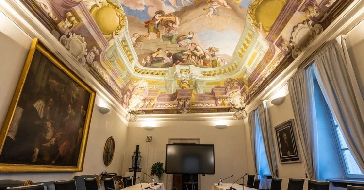 Einige Veranstaltungen des Festivals finden in der prestigeträchtigen Sala dell’Aurora statt. Das beeindruckende Gewölbe darüber wurde um 1750 mit illusionistischen architektonischen Elementen und dem Fresko *Trionfo dell'Aurora* (Triumph der Morgenröte) geschmückt, das den Aufstieg der Familie Trentini darstellt. Es stammt von einem herausragenden Künstler der venezianischen Schule, dessen genaue Identität bis heute unter Experten umstritten ist.